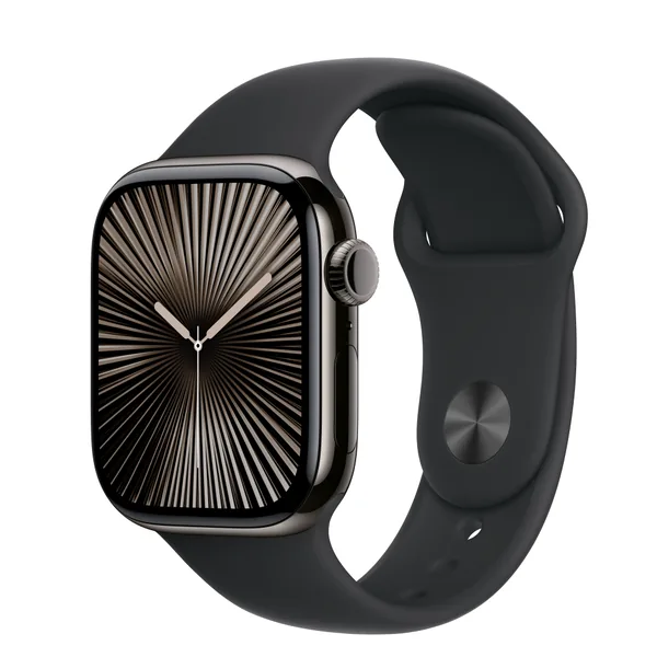 Apple Watch S10 Cellular 42mm okosóra, titántok, Fekete sport szíj M/L, Szürke