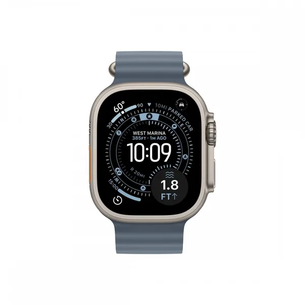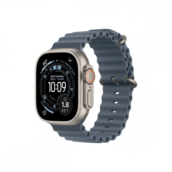 Apple Watch Ultra az a nagy teljesítményű okosóra, amely a szabadban és a vízen is megbízható társat ad. Ez a 49 mm-es Cellular kivitel természetes titántokkal és acélkék szíjjal a tartósságot és kényelmet ötvözi.