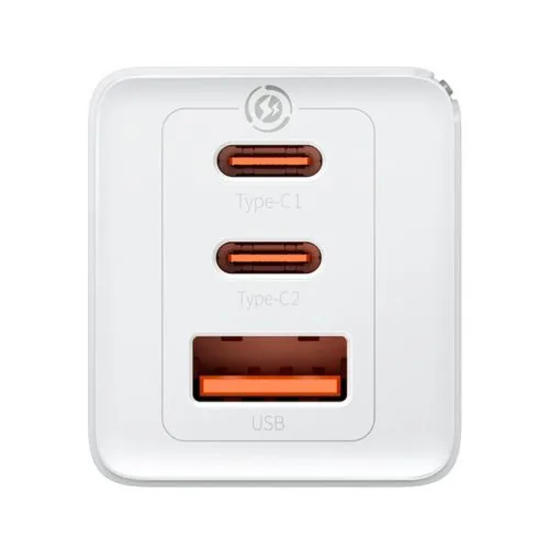 • Baseus GaN5 Pro töltő, C+C+U, 65W PD, Fehér (CCGP120202)