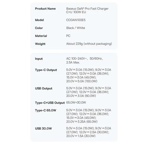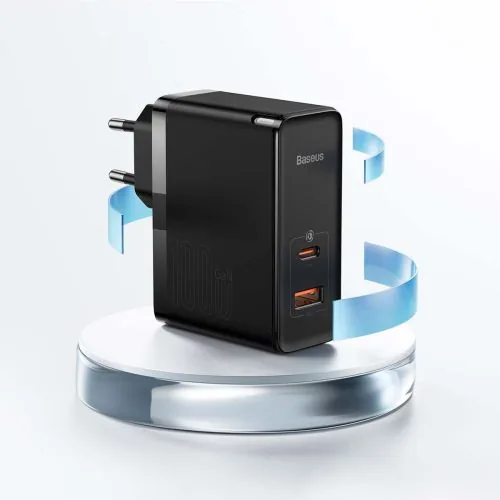 Baseus GaN5 Pro töltő gyors és kompakt megoldás, amely 100W teljesítményt kínál. Ez a töltő GaN technológiát használ, ezért kisebb és hatékonyabb. Így ideális utazáshoz és napi használathoz is.