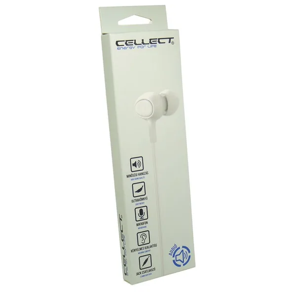 • Cellect 3.5 jack sztereó headset, mikrofonnal, 10mm membrán, Fehér