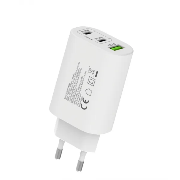 • Hálózati gyorstöltő adapter 65W, USB-A és 2x USB-C kimenet, Fehér