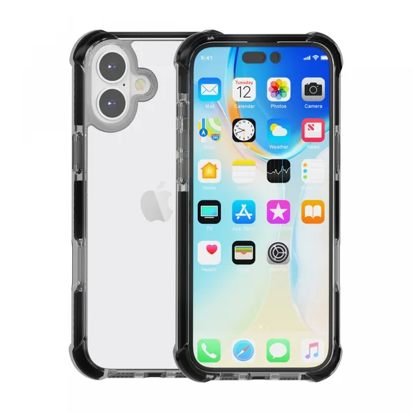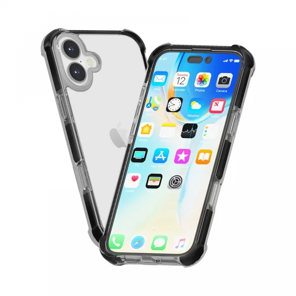 A termék anyaga: szilikon. Funkció: ütéselnyelő hátlap. Kompatibilitás: iPhone 16 Plus. Szín: fekete.