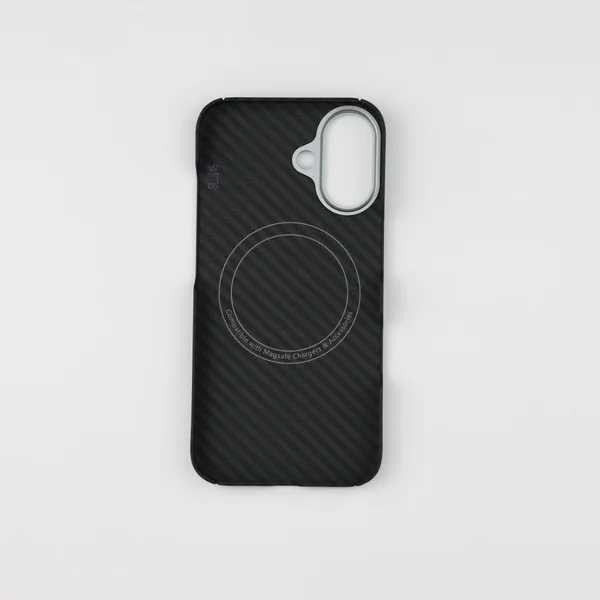 IPhone 16 tok prémium aramid anyagból készült, és beépített mágnesekkel biztosít egyszerű MagSafe-csatlakozást. A tok elegáns karbon textúrája stabil fogást ad. Emellett karcsú kialakítása nem növeli jelentősen a készülék méretét.