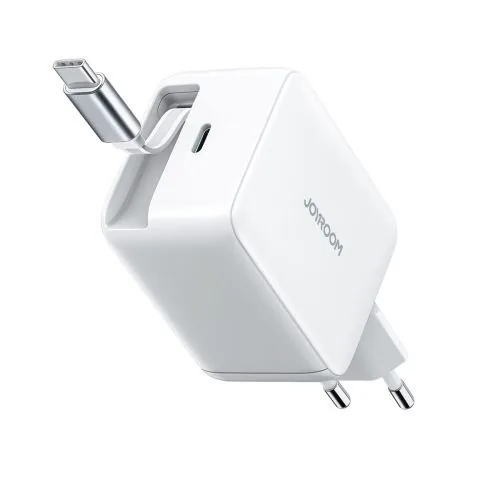 • Joyroom JR-TCL06 gyorstöltő GaN Type-C, 67W, beépített kihúzható 0,7m kábel, Fehér