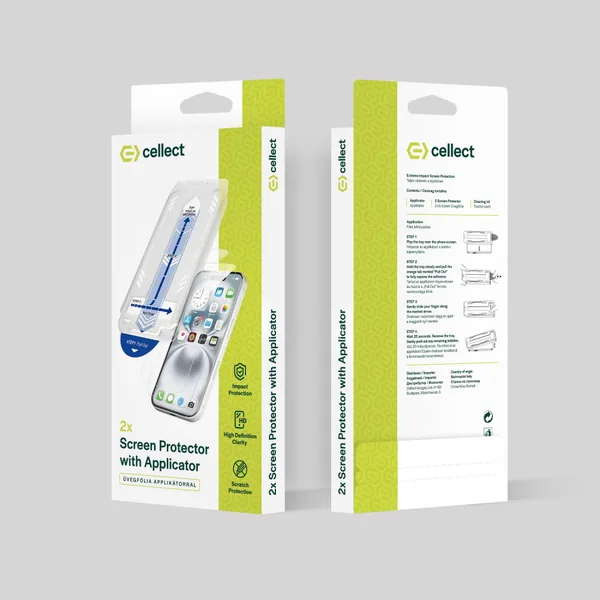 Az applikátor stabil keretet ad a fólia pozícionálásához. Emellett a két üvegfólia lehetővé teszi a gyors cserét használat közben. Ezért hatékonyan csökkenti a képernyőkopás és a karcolódás esélyét. Továbbá a beépített jelölések biztosítják a helyes orientációt. Így időt takaríthatsz meg minden telepítésnél.