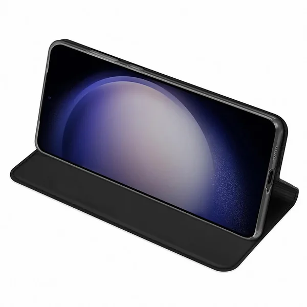 • Samsung Galaxy S25 Plus oldalra nyíló tok, mágneszár, állvánnyal, Fekete