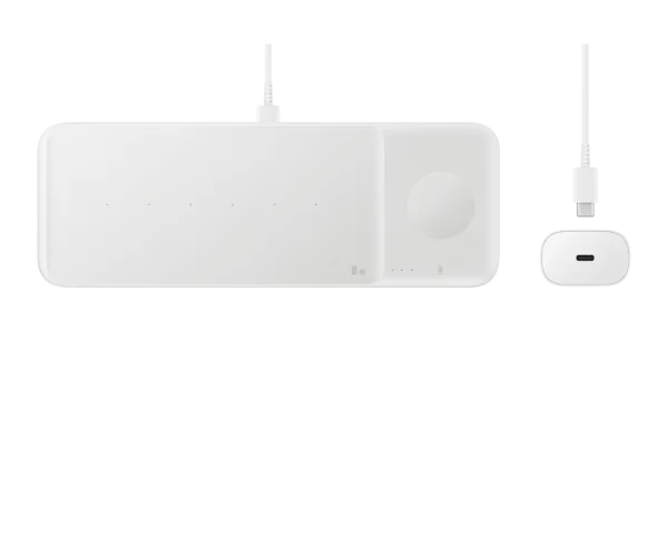 • Samsung Wireless töltőállomás Trio, 3 az 1-ben, Gyorstöltés, Fehér