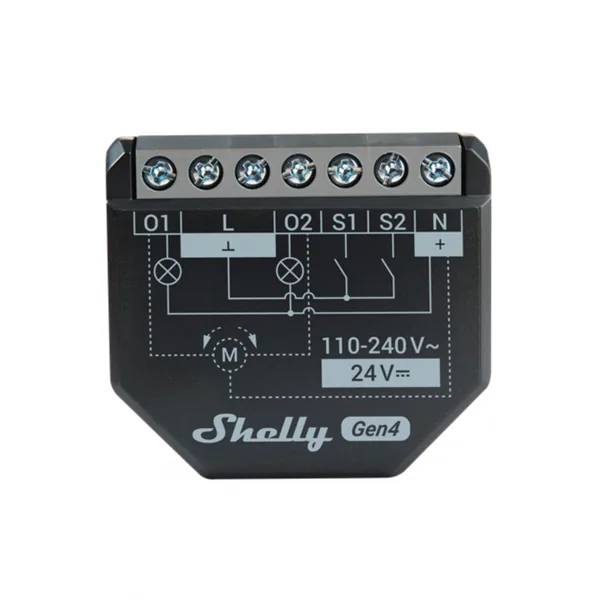 • Shelly 2PM Gen4 WiFi + Bt, relé, két áramkörös fogyasztásméréssel