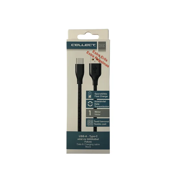 • Type-C adatkábel, Szövetborítású, 1 m, Fekete